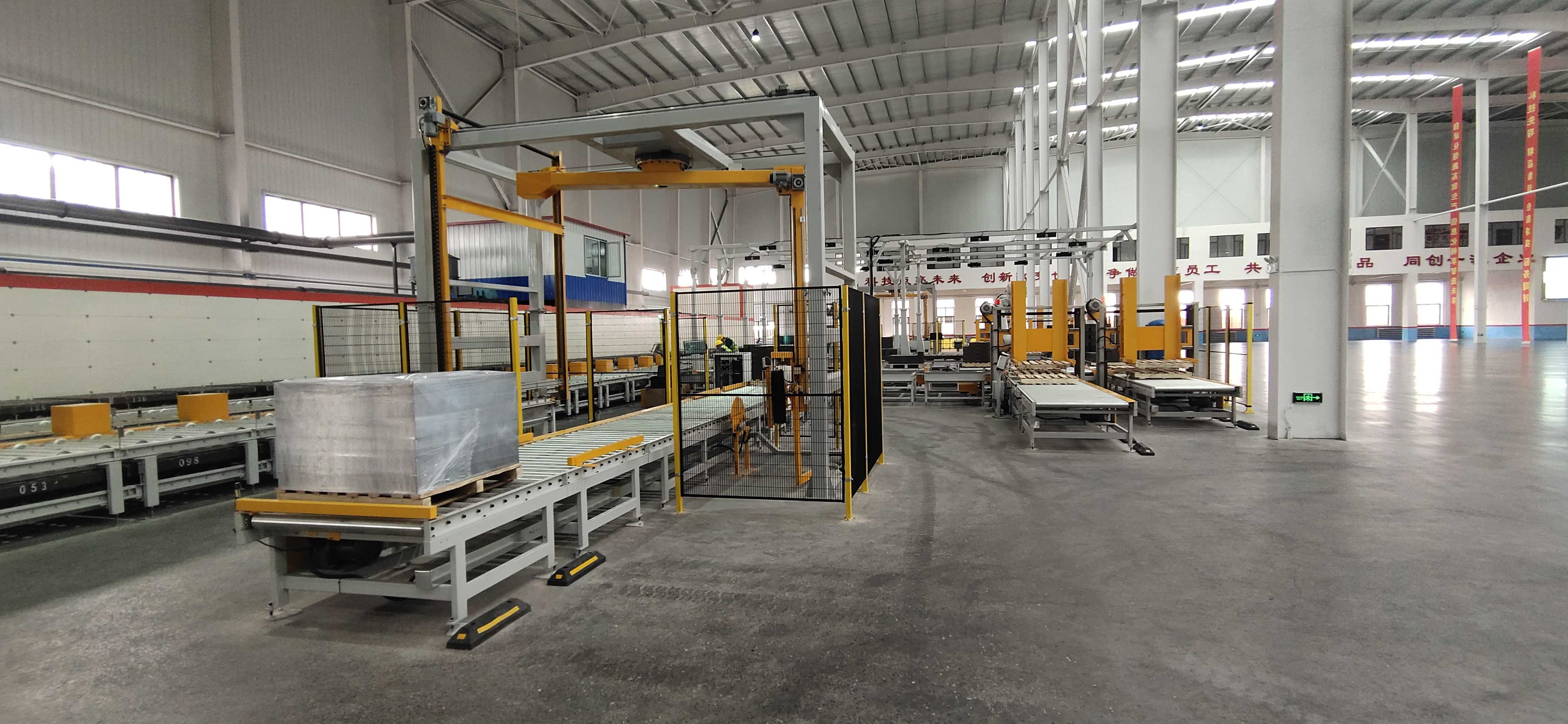物流行業(yè):適配各類托盤(pán)集裝貨物的中轉(zhuǎn)包裝,流水線包裝速度快、品質(zhì)穩(wěn)定,可大幅提升物流倉(cāng)儲(chǔ)的周轉(zhuǎn)效率。