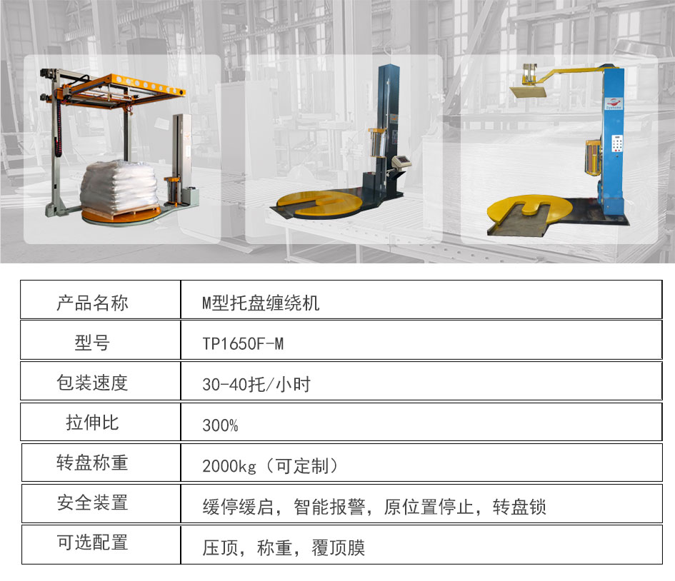 大宏佳森M托盤纏繞機TP1650F-M,采用M型圓盤,
