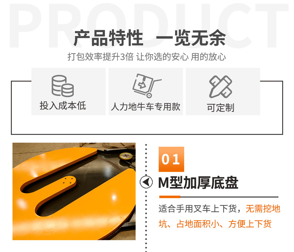 M型托盤,無需挖地坑或額外的斜坡,減少占地面積(例如倉庫在樓上等) ;
