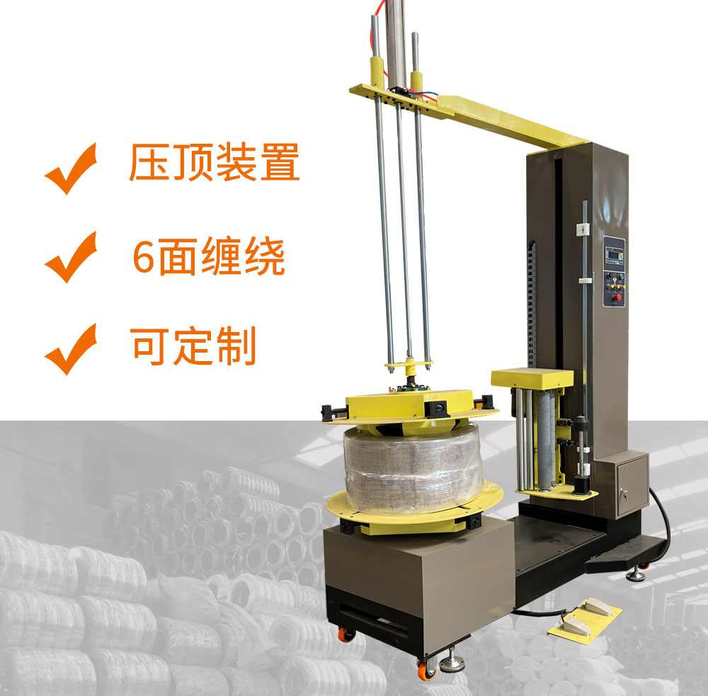 壓頂裝置保證貨物在包裝過程中平穩(wěn),包裝高度可根據客戶要求定做.并且可通過人工翻轉90度實現六面包裝。