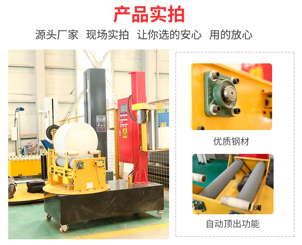 大宏佳森小圓筒纏繞機P800,圓筒類貨物全裹包設備主要適用于圓筒狀物體的軸向包裝,實現貨物360度的整體裹包。如無紡布、簾子布、線圈、橡膠制品及造紙(品)等的包裝。其特點:輕巧、靈便、操作簡便。同時可根據包裝的實際需要,選用自動頂出型、壓頂型、圓筒托盤兩用型、自動在線型等設備。